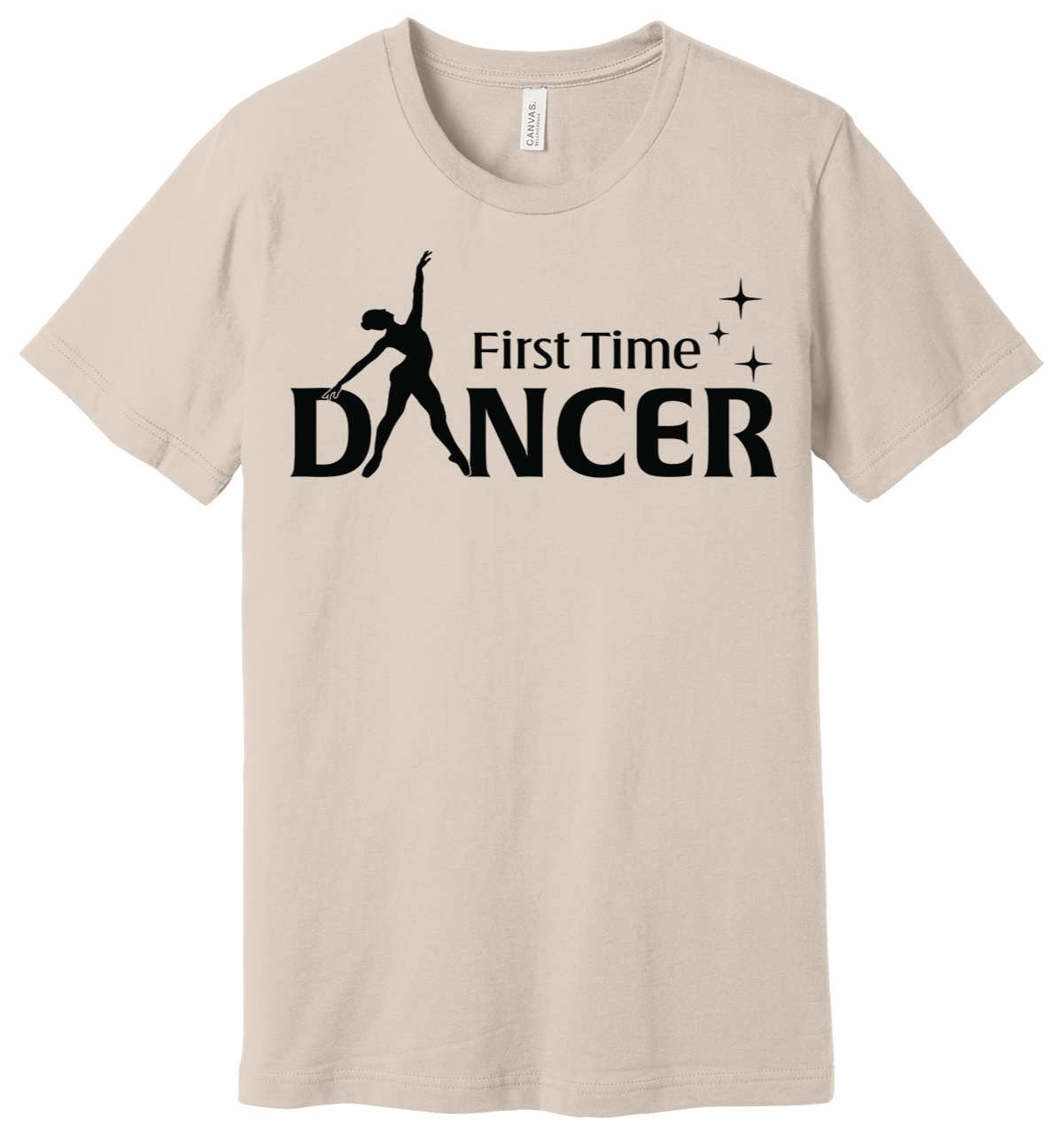 Get ready for the spotlight with this adorable "First Time Dancer" t-shirt, perfect for little ones taking their first steps into the world of dance! Made from soft, breathable fabric, this tee ensures all-day comfort, whether they're at their first practice or showing off their moves at home. The fun and playful design adds a special touch, celebrating their exciting new journey as a dancer. With its comfortable fit and cute style, this t-shirt is a must-have for your budding star’s debut!